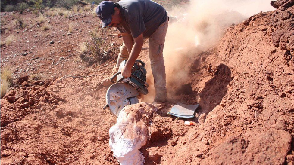 Οι ερευνητές βρήκαν τους σπονδύλους του λαιμού και της ουράς του δεινοσαύρου, κόκαλα από τα μπροστινά του πόδια και ένα μέρος από τα κόκαλά των πίσω του ποδιών.