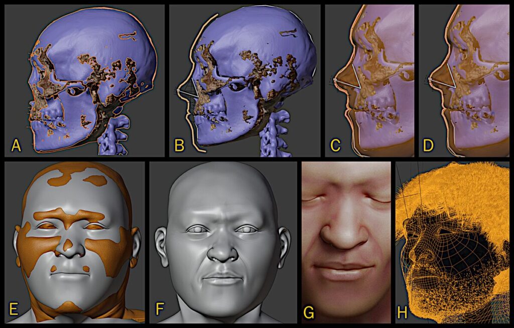 Οι ερευνητές δημιούργησαν δύο εικονικά τρισδιάστατα μοντέλα του άνδρα. Η πρώτη ήταν μια ασπρόμαυρη εικόνα με τα μάτια κλειστά σε ουδέτερη κατάσταση και η δεύτερη ήταν μια πιο καλλιτεχνική προσέγγιση με ανακατωμένα σκούρα μαλλιά και γένια.
