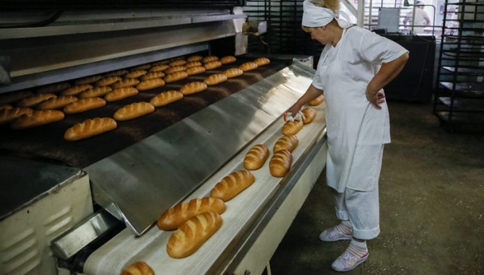 epa05476590 An employee checks bread at a bakery in Kiev, Ukraine, 12 August 2016. Ukrainian First Deputy Prime Minister and Minister of Economic Development and Trade Stepan Kubiv said Ukrainian foods exports to the European Union (EU) have increased by 68 per cent since the beginning of the current year when the free trade area was launched, according to UNIAN agency. EPA/ROMAN PILIPEY