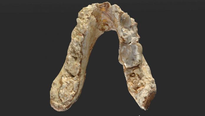 epa05983961 An undated handout photo made available on 23 May 2017 by the University of Tuebingen shows the lower jaw of a 7.175 million-year-old Graecopithecus freybergi specimen nicknamed 'El Graeco' found in Greece. According to a publication in the PLOS ONE scientific journal on 22 May 2017, 'researchers investigated two fossils of Graecopithecus freybergi and came to the conclusion that they belong to pre-humans. Their findings further indicate that the split of the human lineage occurred in the Eastern Mediterranean and not - as customarily assumed - in Africa.' EPA/WOLFGANG GERBER / HANDOUT MAY ONLY BE REPRODUCED IN CONNECTION WITH THE PLOS ONE SCIENTIFIC JOURNAL REORT HANDOUT EDITORIAL USE ONLY/NO SALES